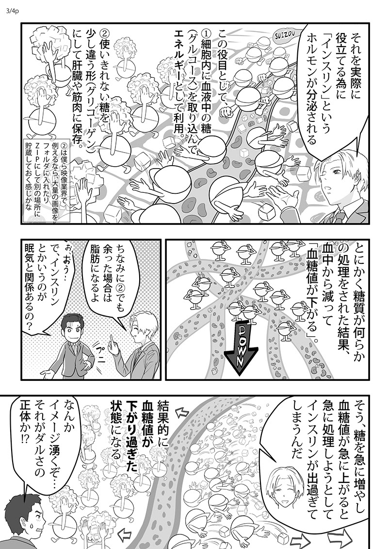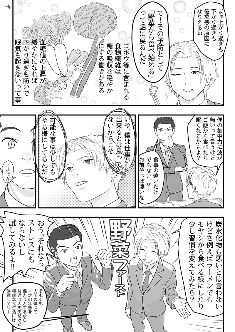 モノクロの静止画4ページ漫画を制作後、漫画動画にもしました。