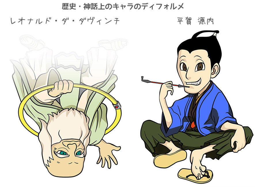 歴史上のキャラのディフォルメ「レオナルド・ダ・ヴィンチと平賀源内」