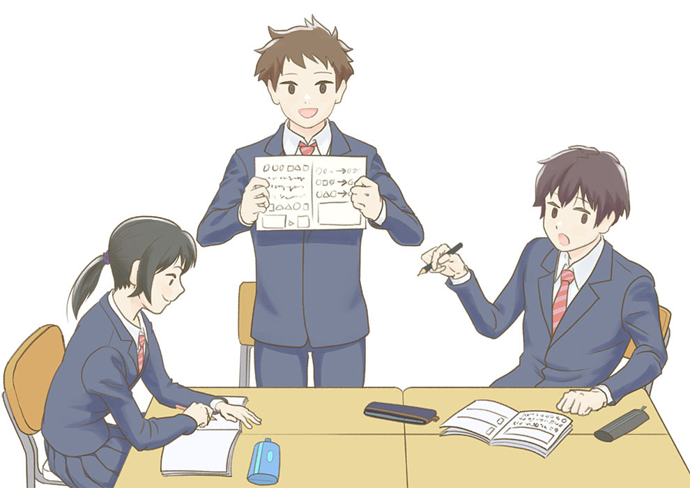 中学生の授業中の課題発表の挿絵カット、生活、仕草