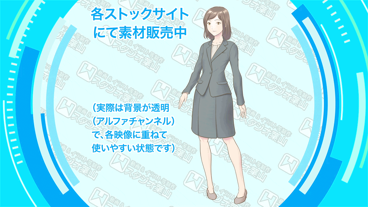 ニュースや商品を案内するのに最適なアニメキャラ・女性(A)を制作しました(全4種の内の1つ)。