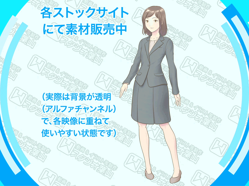 【ストックサイトでも販売中】案内用アニメキャラ(女性の例)を制作しました